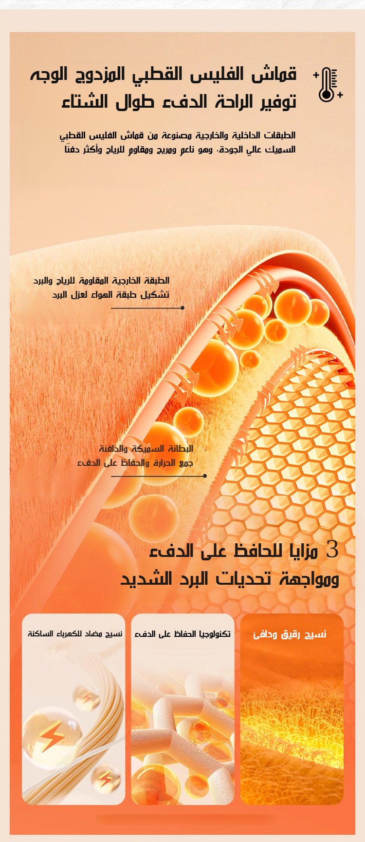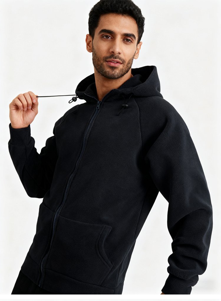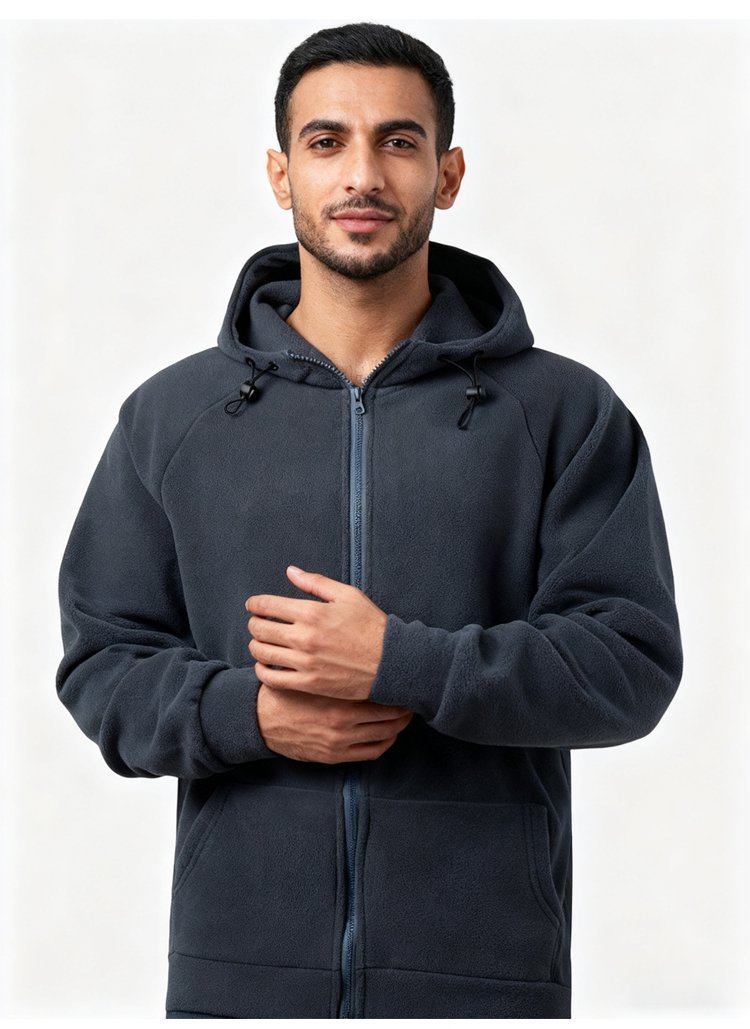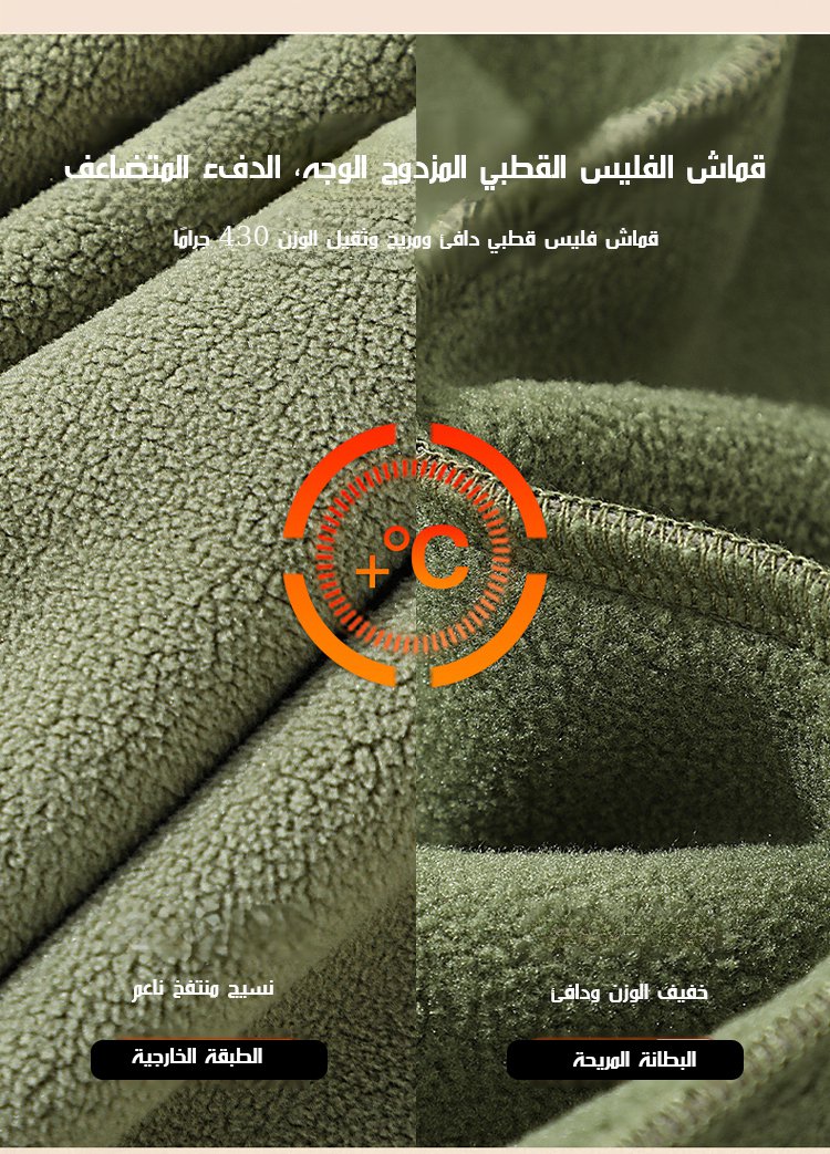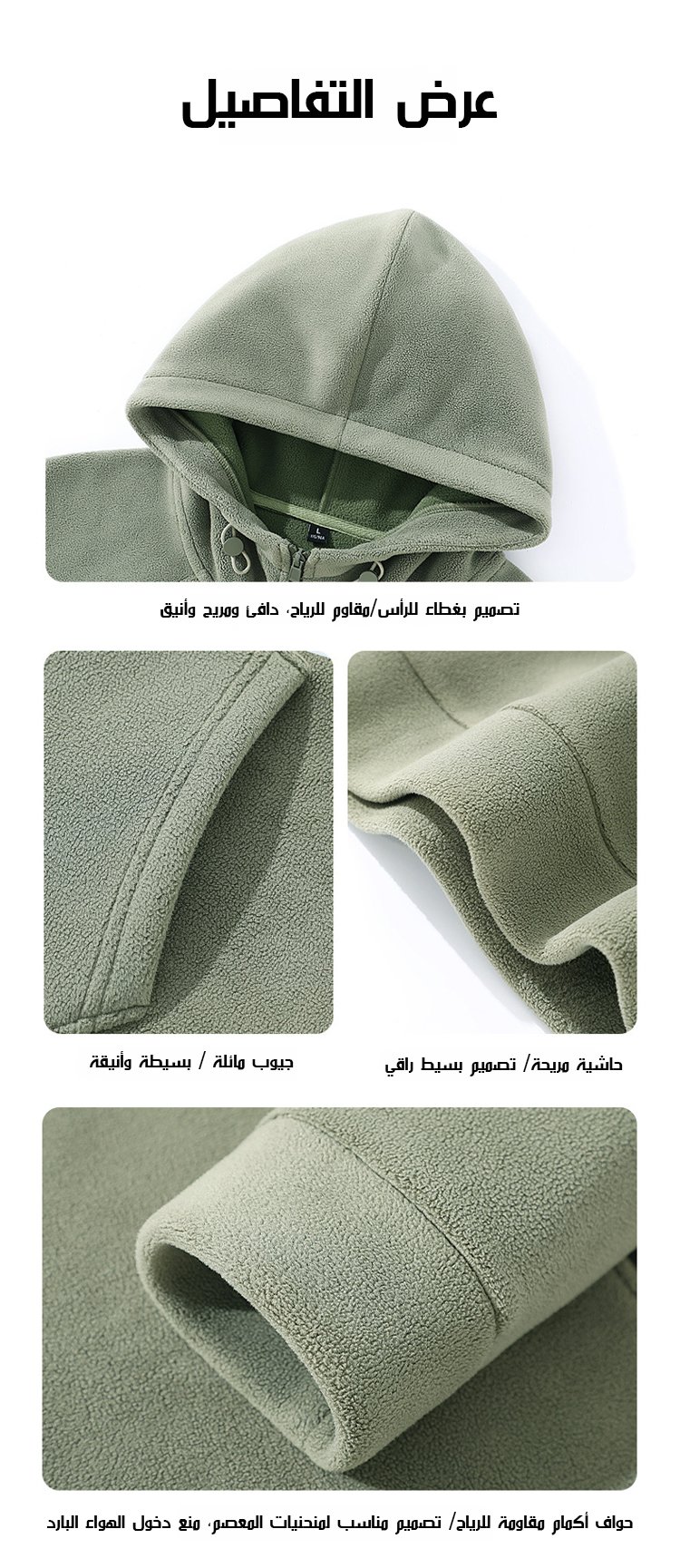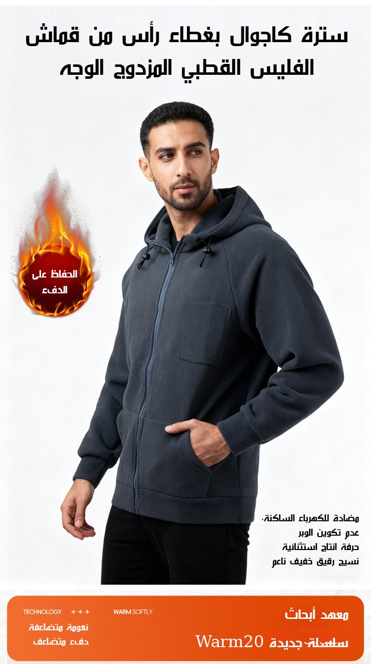 سترة سميكة بغطاء رأس من قماش الفليس القطبي المزدوج الوجه (عزل الهواء البارد والحفاظ على الحرارة)