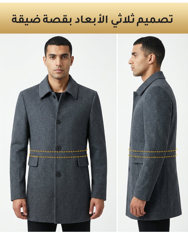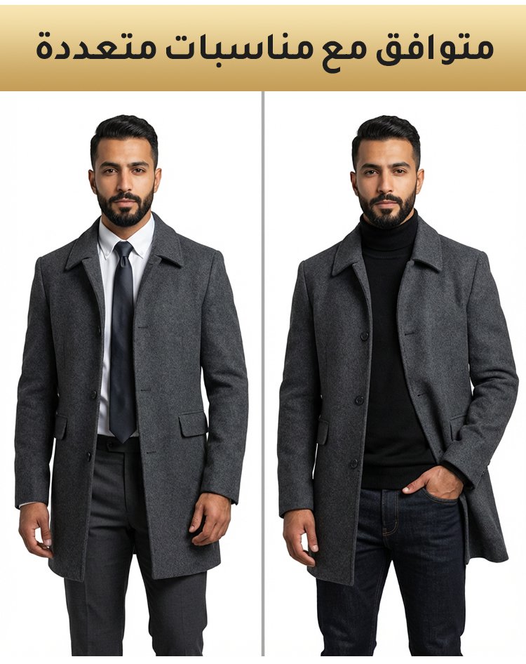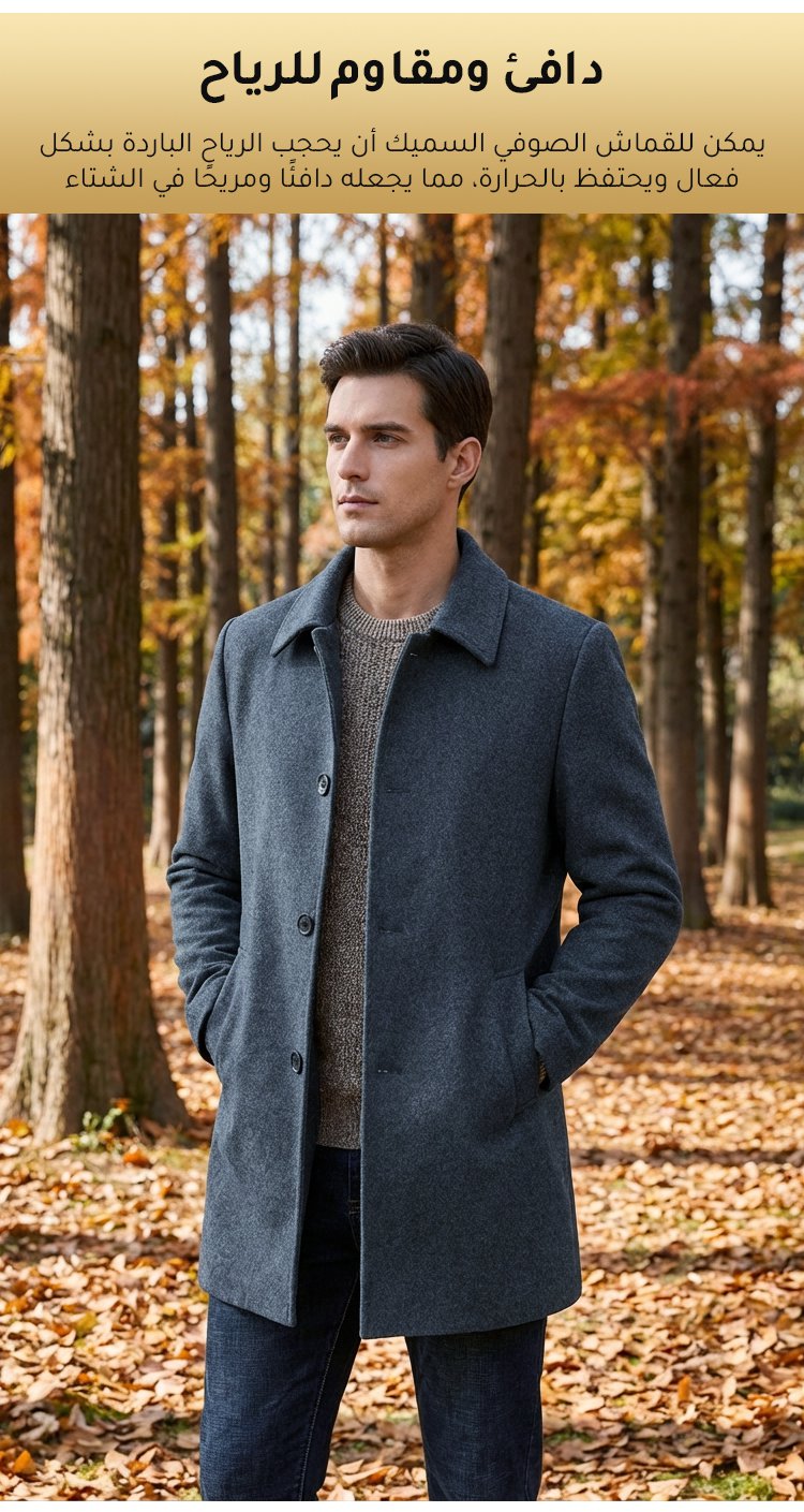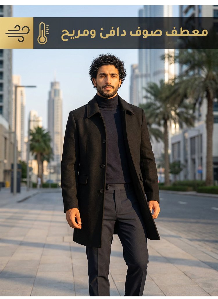 معطف صوف أنيق بياقة مطوية للرجال