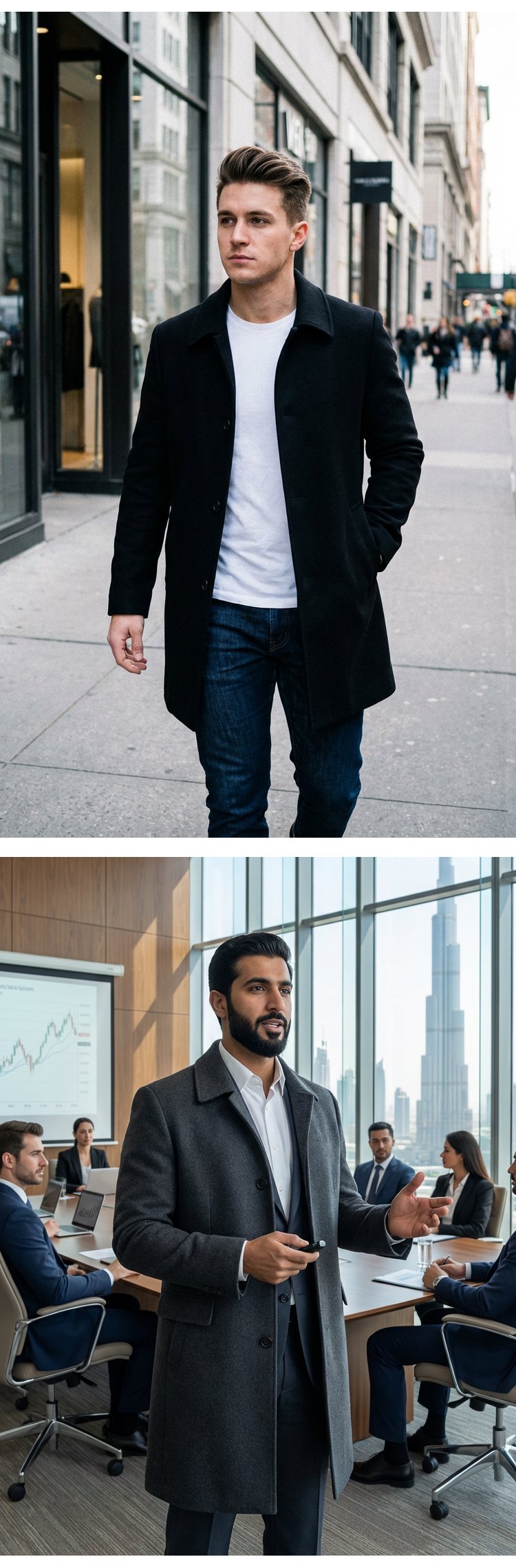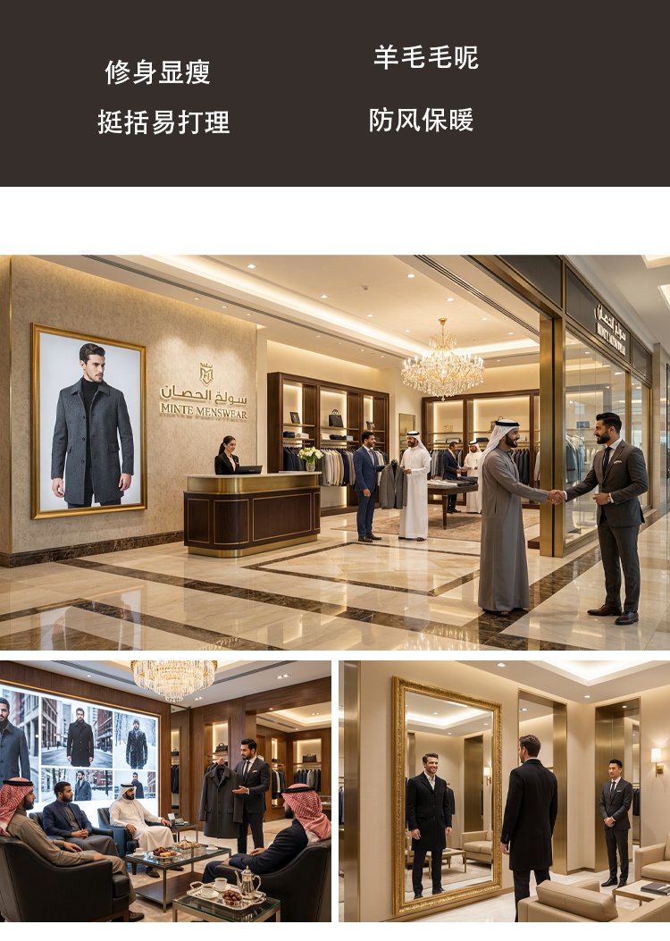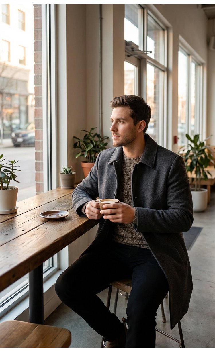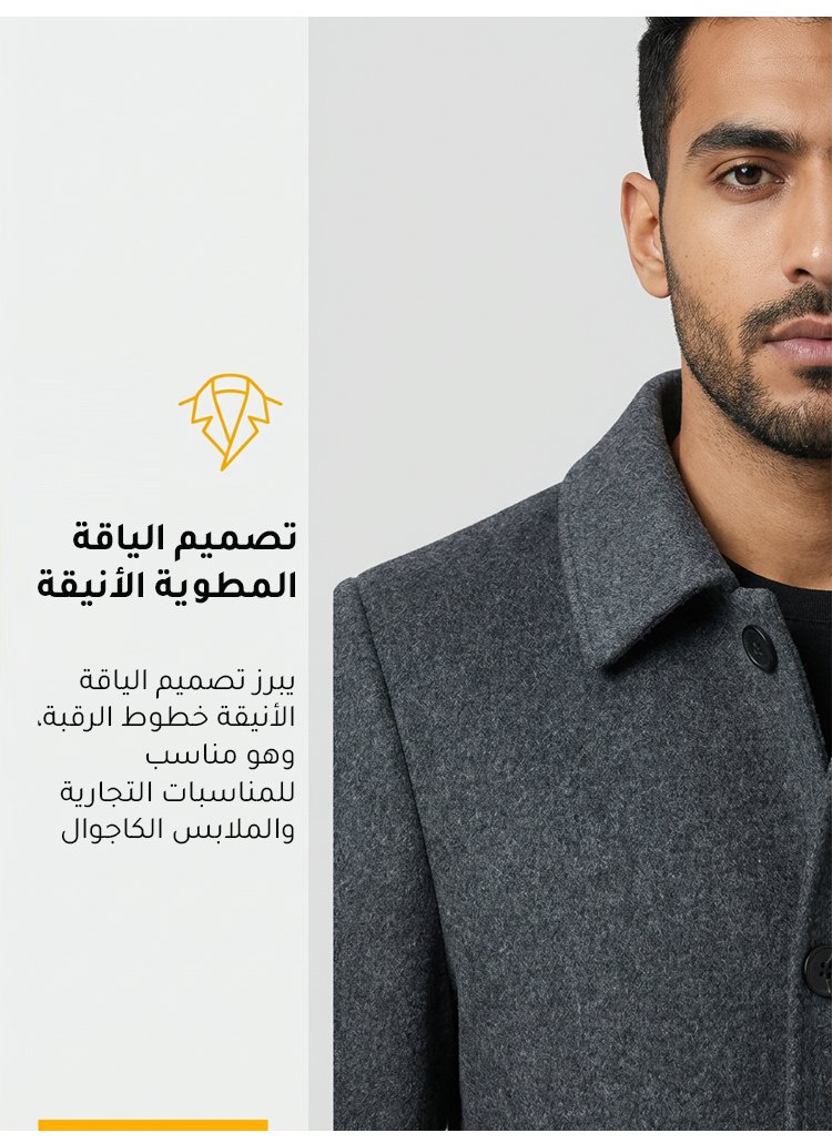 معطف صوف أنيق بياقة مطوية للرجال